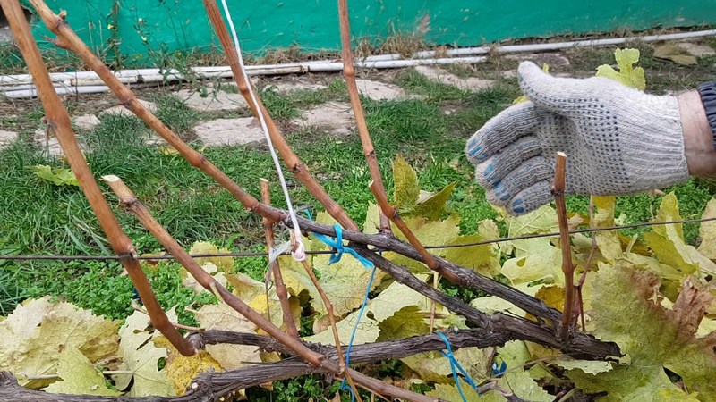 3. Укладывание винограда: Аккуратно прижмите лозы к земле. Это поможет предотвратить повреждения от сильных ветров и морозов.