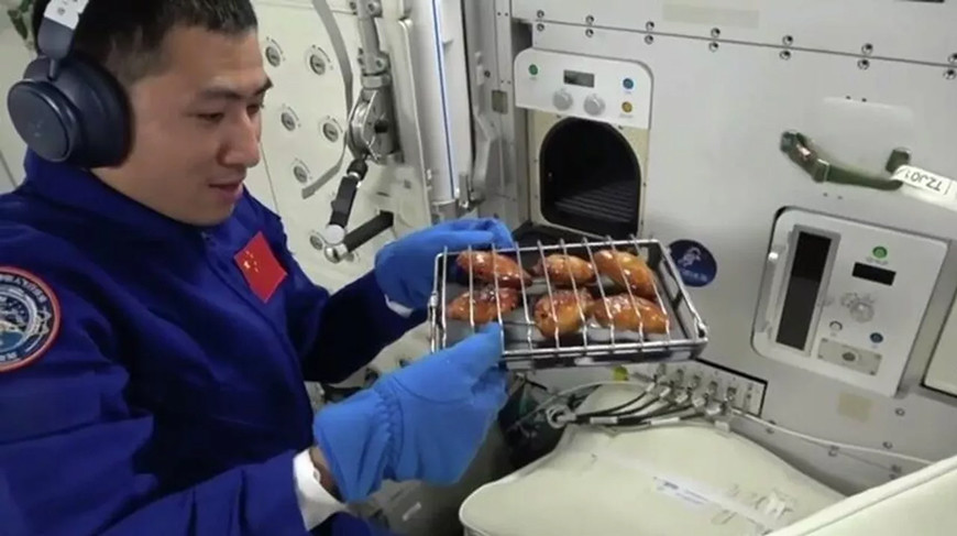 На видео видно, что космонавты приготовили куриные крылышки на гриле за 28 минут. Помимо этого, для командира миссии «Шэньчжоу-20» они приготовили стейк с черным перцем.