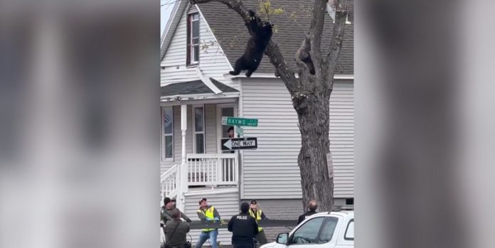 В городе Олбани на северо-востоке Соединенных Штатов движение транспорта было ограничено на четыре часа. Причиной этого стало появление медведя, который забрался на дерево. Об этом рассказывает 360.ru.