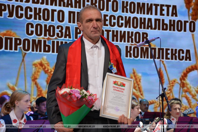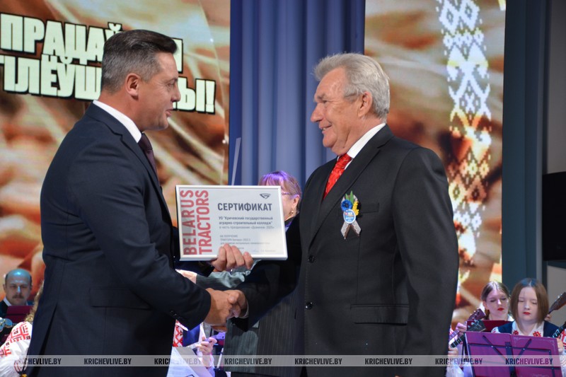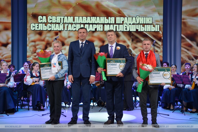 Мероприятие продолжилось церемонией награждения. Среди награжденных были и кричевляне. Благодарностью Министерства сельского хозяйства и продовольствия был отмечен председатель СПК «Колхоз им. Суворова» Михаил Малашенко. Почетной грамотой областной организации профсоюза работников АПК тракторист-машинист КСУП «Добрость»  Владимир Алексеенко, санаторной путевкой от ОАО «Амкадор» водитель погрузчика КСУП «Малятичи-АГРО» Александр Ковалев, ценным подарком от «Бобруйскагромаш» главный инженер СПК «Колхоз им. Суворова  Андрей Сидоренко, сертификатом на трактор  директор государственного аграрно-строительного колледжа  Борис Беленков.