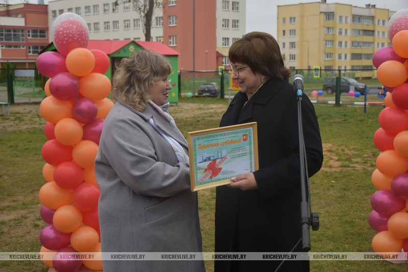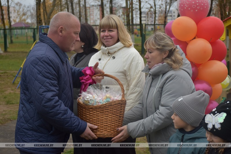 Также гости мероприятия вручили сладкие подарки для маленьких дошколят. С ответным словом выступили родители дошкольного учреждения и высказали слова благодарности за помощь и сотрудничество в адрес председателя Кричевского райисполкома Алексея Шарая, сопартнеров: Ирины Прудниковой председателя Кричевской РО РОО «Белая Русь», Вадиму Рыськову, председателю Кричевской РО ОО «Белорусский фонд мира», начальнику отдела по образованию Николаю Копаеву.