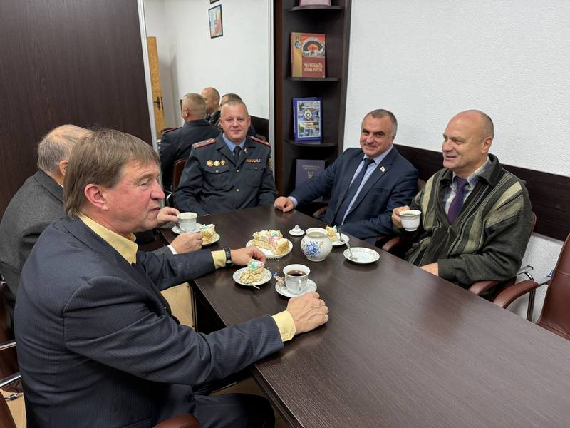 На встрече с начальником Кричевского отдела милиции Станиславом Чуприным собрались ветераны: председатель ветеранской организации органов внутренних дел Александр Малунов, и наиболее активные участники ветеранского движения – Михаил Браусов и Владимир Типанков.