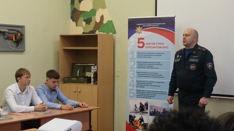 В жизни каждого старшеклассника наступает момент, когда необходимо определиться с будущей профессией. Чтобы помочь ребятам сделать осознанный выбор и познакомить их с героической работой спасателя, заместитель начальника Кричевского РОЧС Андрей Сакович встретился со школьниками Кричева.